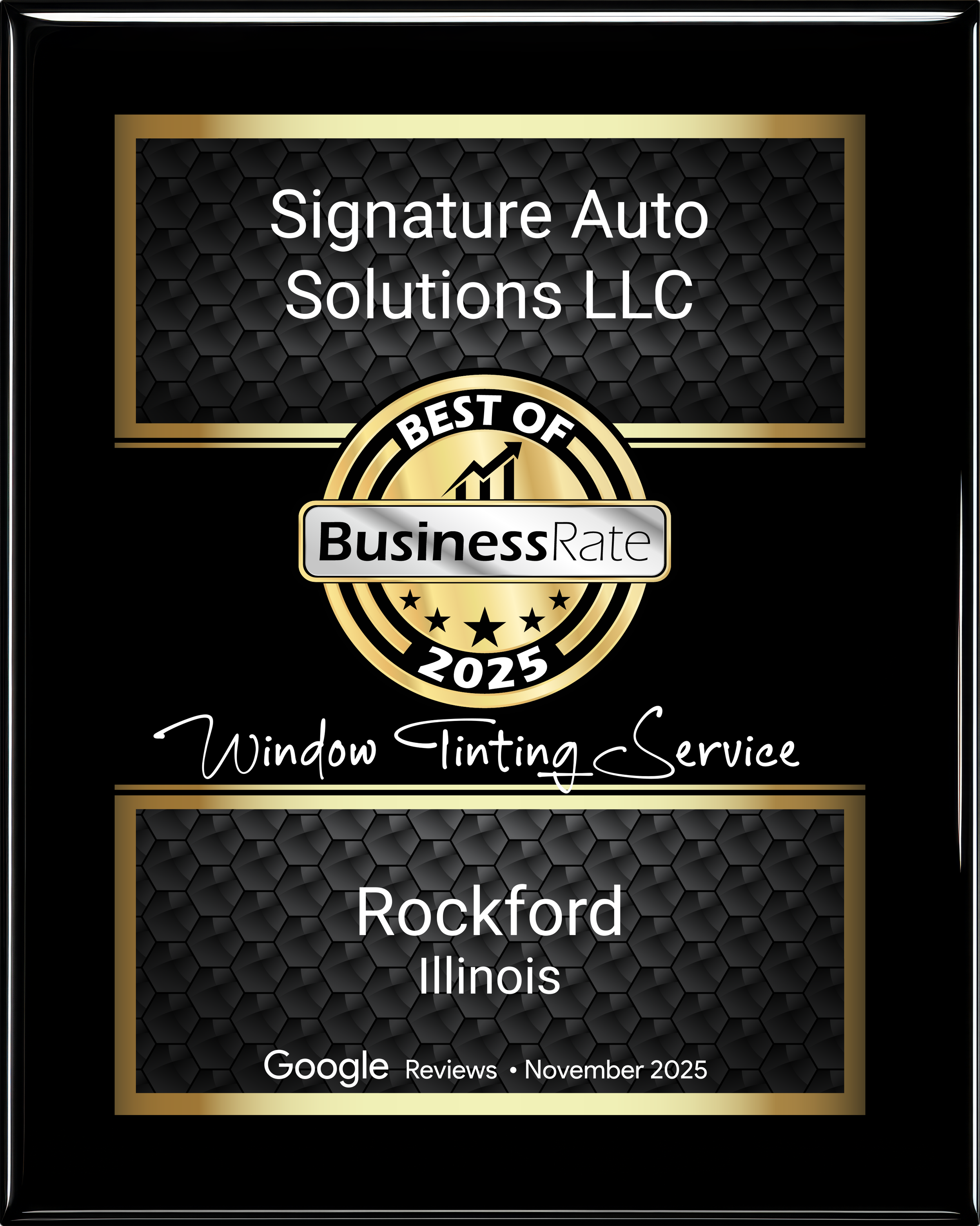 At Signature Auto Solutions LLC in Rockford, IL, our attention to detail is unmatched. We treat every car as if it were our own, ensuring top-notch quality, convenience, and value for our customers. Trust us to provide the best window tinting, ceramic coating, and paint protection film services.